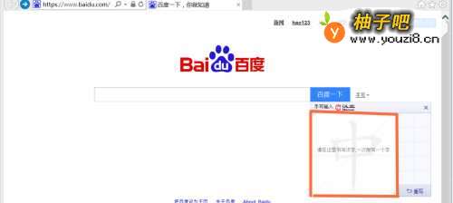 8第八步:在百度首页搜索栏后面弹出的方框,如下图红色标记处,就是百度手写板。在手写板进行下一步执行。