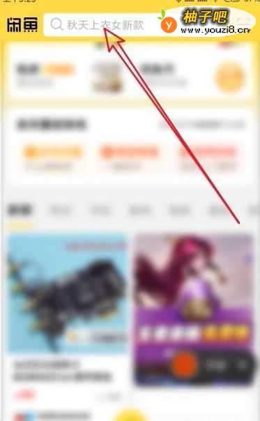 2这时就会启用闲鱼的软件主界面,我们点击上面的“搜索”框进行搜索