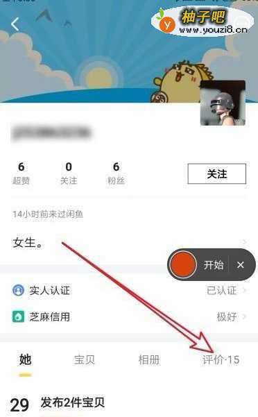 5这时就会启用该好友的详情页面了,点击页面中 “评价”选项卡。