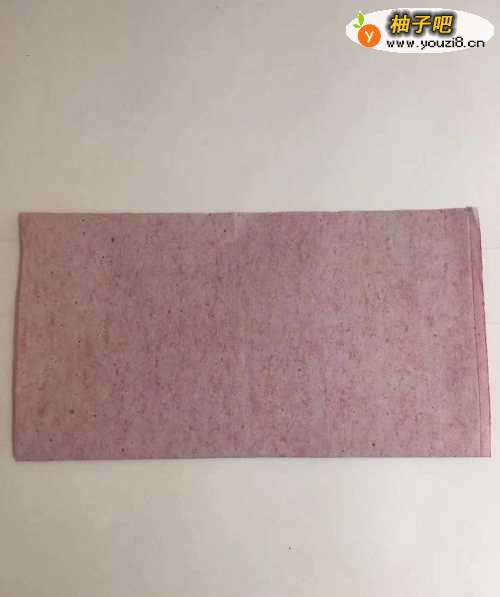 第一步 取一张16厘米X16厘米的正方形红色彩纸 先把它平放 然后再从下向上对边折叠