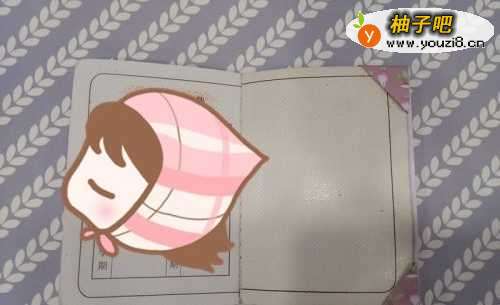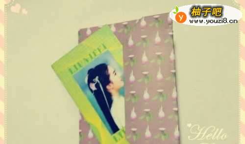 9从侧面把之前折入的边缘部分拉出如图,包住左右书的边缘用胶固定。折好如图,将书皮合上,在隔层可放入书签等。