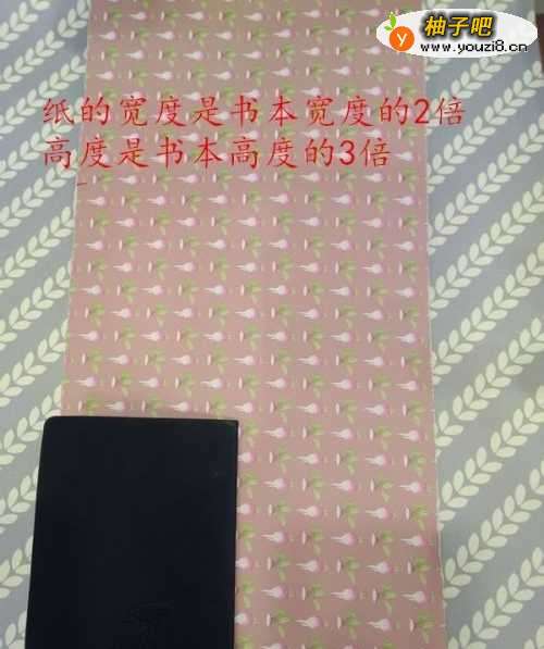 如果配置一大张纸裁剪的思路就是,一大张纸铺开,将书放在左下角,对齐纸的左边,将整个书沿右边缘翻过来成为2倍的宽度。3倍的宽度两次翻过来即可,做下标记。