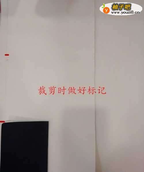 2沿上步骤中的标记将纸裁下来,成为长方形纸(比例大概是书高度的3倍,宽度的2倍)。小编配置的纸有正反面的,彩色为正面,白色为背面。