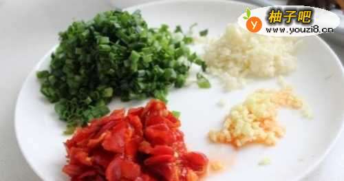 2将泡红辣椒切成末。
