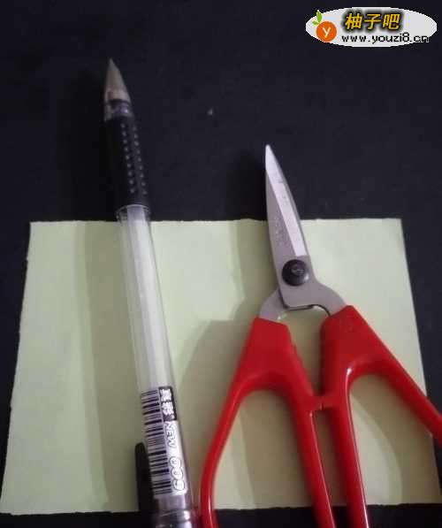 第一步,把需要设置的工具准备出来。一张纸,一支笔和一把剪刀。