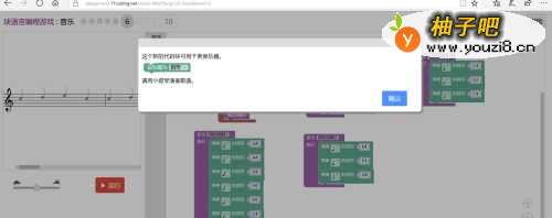 第6关要求更换乐器,默认是钢琴,能使用“配置乐器为……”控件实现这个功能。