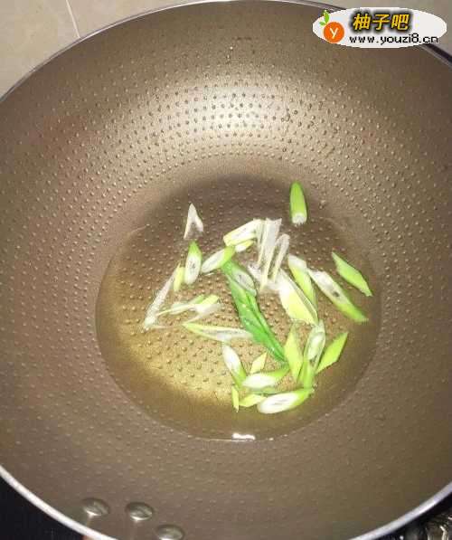 2如图,锅内加入适量色拉油,烧至七成热放入大葱。