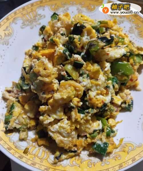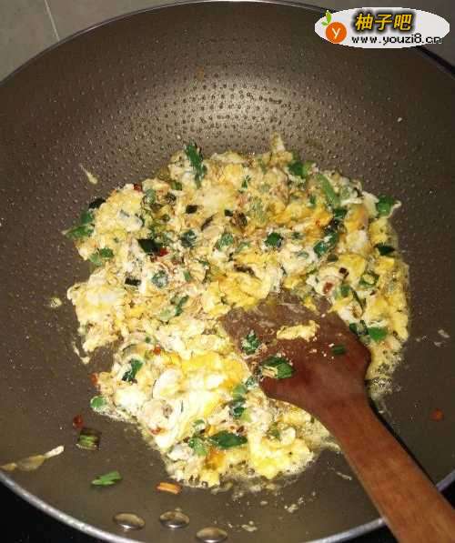 5如图,将鸡蛋翻炒均匀,熟透后关火。