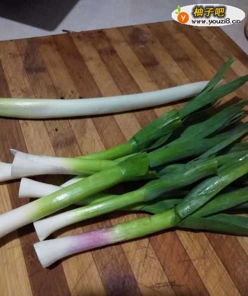 如图,首先取来新鲜大葱、蒜苗,洗净后切好备用。