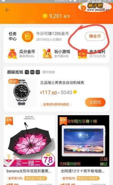 启用手机淘宝客户端,登录淘宝主页面,能看到领金币就能点击进去啦,点进去的是每天签到的金币。