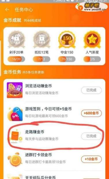 3这里重点介绍新玩法——走路赚金币。在金币任务里面点击进去。