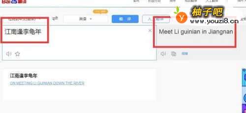 5此时我们就能看到“江南逢李龟年”的英文翻译了,也就是“Meet Li guinian in Jiangnan”,如图