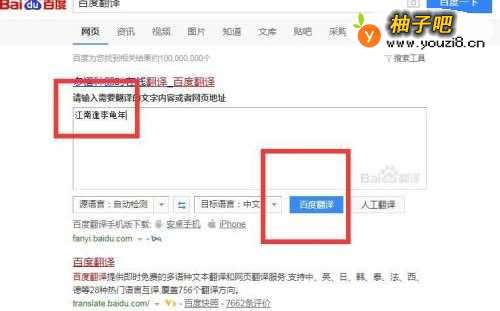 4我们找到百度翻译,然后输入“江南逢李龟年”并点击按钮“百度翻译”,如图