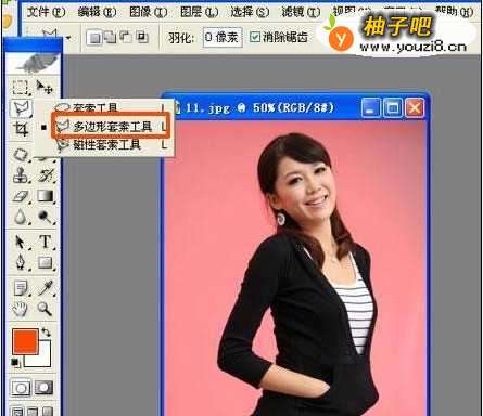 2运用工具栏里面的多边形套索工具进行处理,如图: