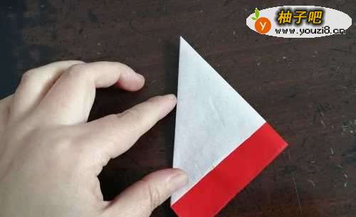 今天我们来剪一幅四折窗花,剪纸之前,需要把彩纸折成一定的形状。步骤很简单,保证男孩伴们一看就会。