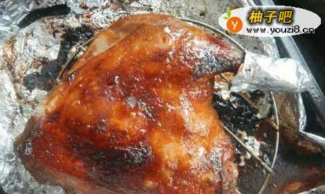 5再次取出,将容易烤焦的部分用锡纸包上,刷蜂蜜继续烤15分钟至颜色金黄就差不多了(如果你觉得效果还不够,也能再次翻面烤个10分钟哒,但是一定要记得看,别烤糊了哦)。
