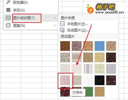 6在【图片或纹理】菜单列表中单击【方格布】选项