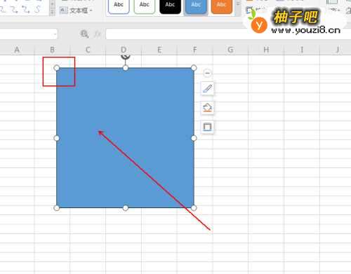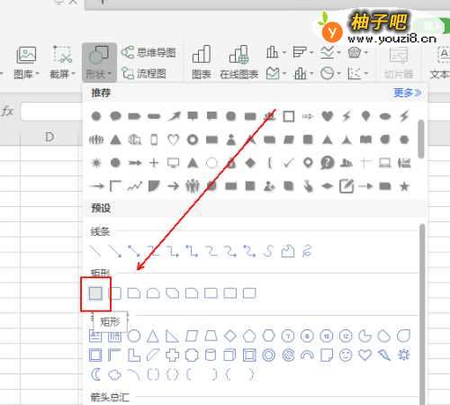 4在表格里配置矩形形状拖拽出一个矩形图形。