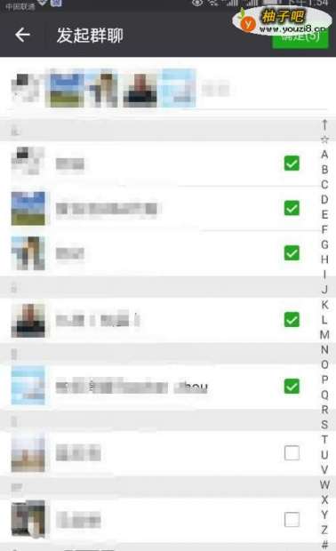 3选择好友中要加入群聊的人,在好友名称的右边的小方框点一下,就会打上勾,选好加入群聊的成员后点右上端的“确认”按钮,群就建成功了