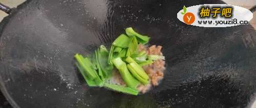 4放入蒜苗段。