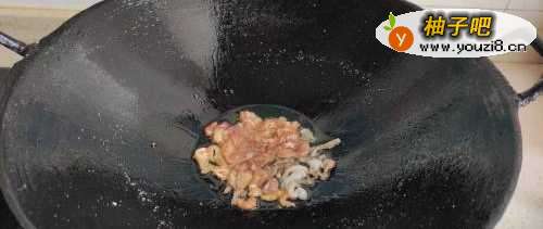 锅中加入60毫升的食用油,烧至5成热,放入猪肉煸炒至金黄色。