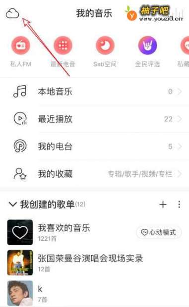 2开启我的音乐后,我们点击页面左上角的音乐云盘图标