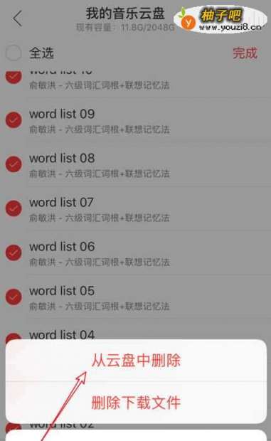 6我们选择从云盘中删除,这样我们就成功批量删除音乐云盘里面的歌曲了
