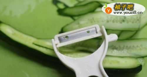 小黄瓜清洗干净,用削皮刀平行销薄片备用。