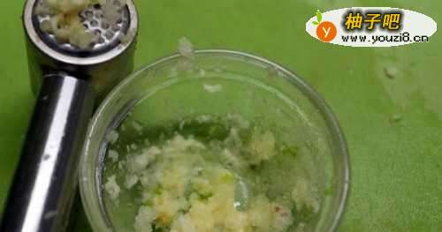 2大蒜用挤泥器压出来,大蒜若没有挤泥器也能手工菜刀剁碎。