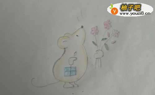 5然后我们再画上外面的手和手里拿着的花。花注意大小和形态要适合这幅画。