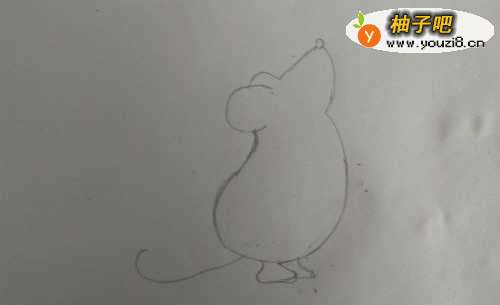 2首先我们先画老鼠身体的外形先画老鼠圆圆的鼻子然后画三角形顺着画曲线下来。