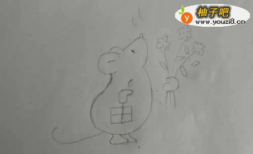 3画好后我们再画老鼠细长的尾巴和老鼠小小的脚。