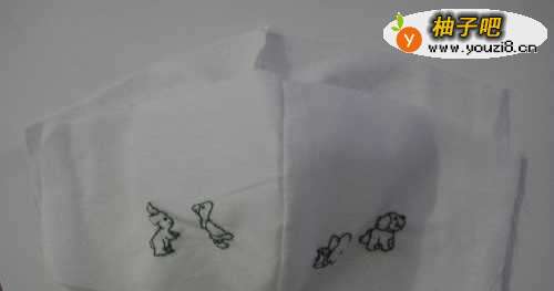 利用棉布的边角料,绣上宝宝喜欢的图案,即成。环保、实用。