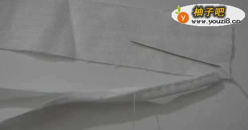 (3)上、下边缝好后,再缝左、右的边。把左、右边向里折边宽约2.2cm,然后疏缝,疏缝时需留出约0.5cm。