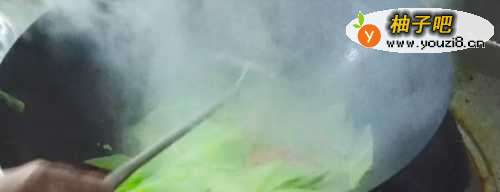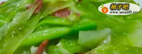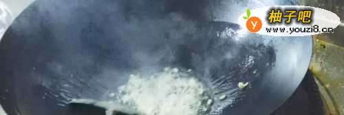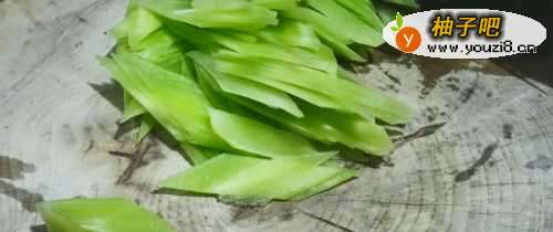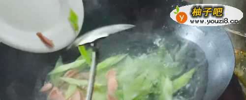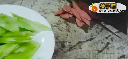 7蒜沫爆出香味后下莴笋和火腿肠。
