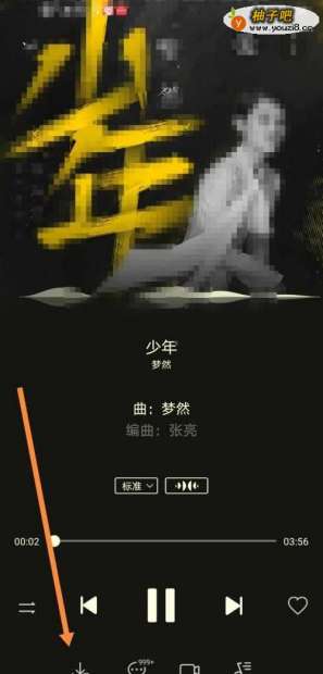 5选择歌曲播放页面左下角的下载图标,点击下载歌曲至手机U盘内存中。