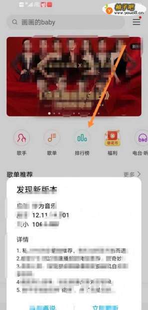 选择首页中的“排行榜”,点击开启页面