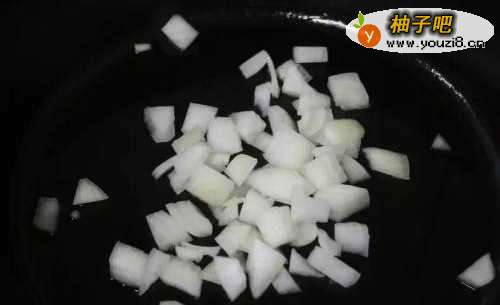 2起油锅中小火炒香洋葱。