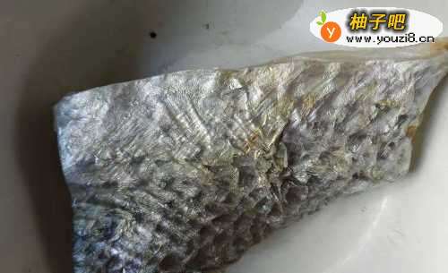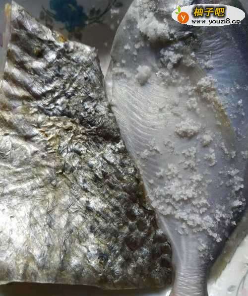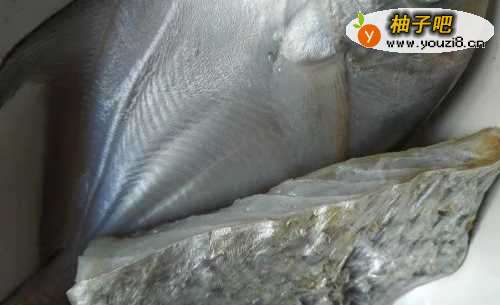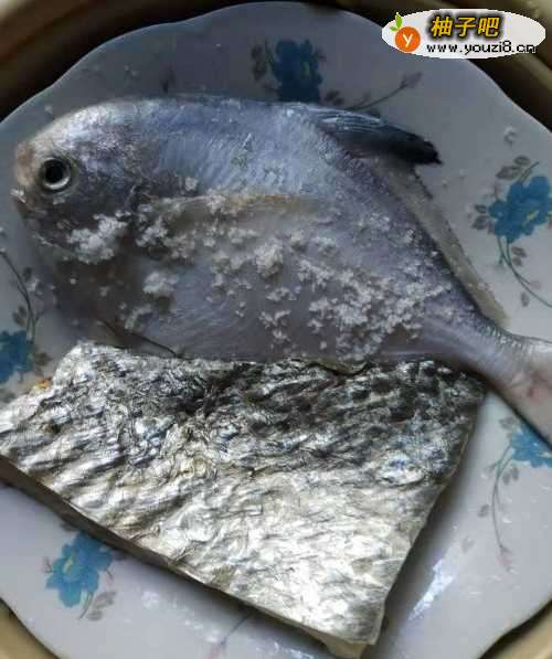 把鲳鱼去除内脏,洗去内部的黑膜,刮掉表面的鱼鳞,洗干净