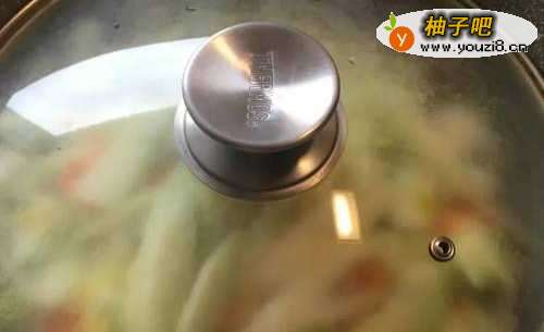 5盖上锅盖闷煮约1分钟,直到黄瓜变软