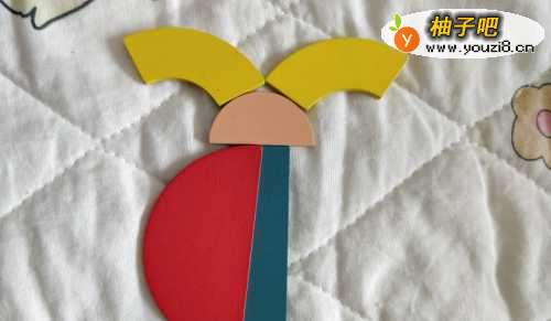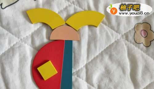 6在红色半圆的上面,放上一个黄色正方形,如图。