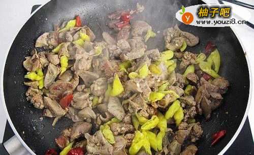 8倒入泡椒,翻炒出香味