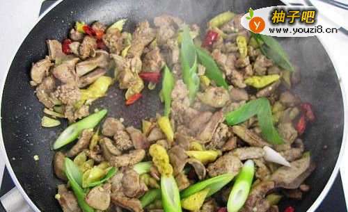 7倒入鸡肝,炒2分钟