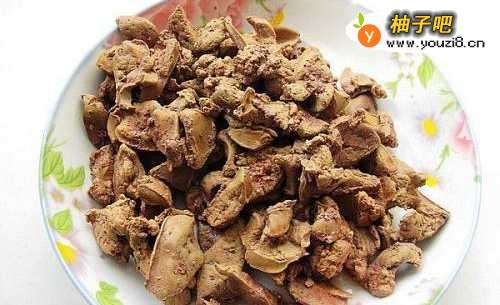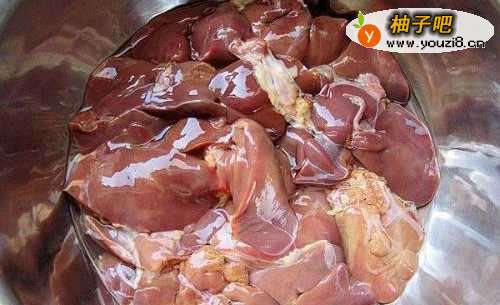 2用冷水浸泡1小时,然后将鸡肝切成片状