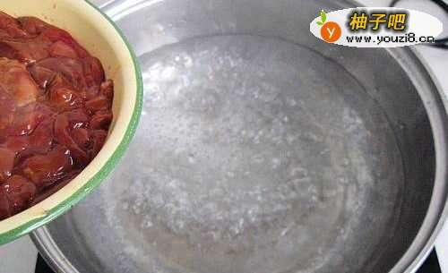 3锅中烧开水,将鸡肝烫一下捞出沥水