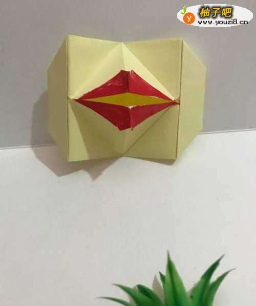 8第八步 都折好之后 再左右翻过来同样实施一遍 然后再把它竖起来 轻轻拉动左右两边 红唇自然而然就一张一合的动起来了