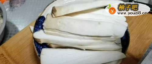 第一步,将杏鲍菇清洗好,然后切片,上锅蒸至软烂;