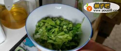 2然后调料汁,将小葱、大蒜、香菜切成末后放在小碗中,加入少许陈醋,生抽,蚝油;