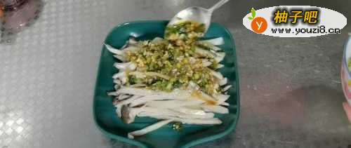 4接下来,将调好的料汁浇在杏鲍菇上;