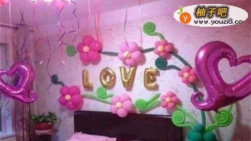 在新人的房间里,一定要多买一些红色、粉色的装饰品来装饰,网上都有很多卖的,比如“I LOVE YOU”等的气球装饰,或者天花板的彩带装饰,都是比较不错的选择哦。